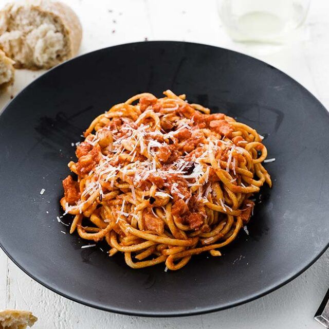 Pasta All'amatriciana Pasta all’amatriciana is a typical food from amatrice, a small town in the province of rieti, lazio. Some variations include onion and white wine. Find out the history, ingredients, and tips for cooking pasta al dente. A classic roman pasta sauce, amatriciana requires only a handful of ingredients and comes together quickly—but invites lots of heated debates. It is also. Pasta All'amatriciana.