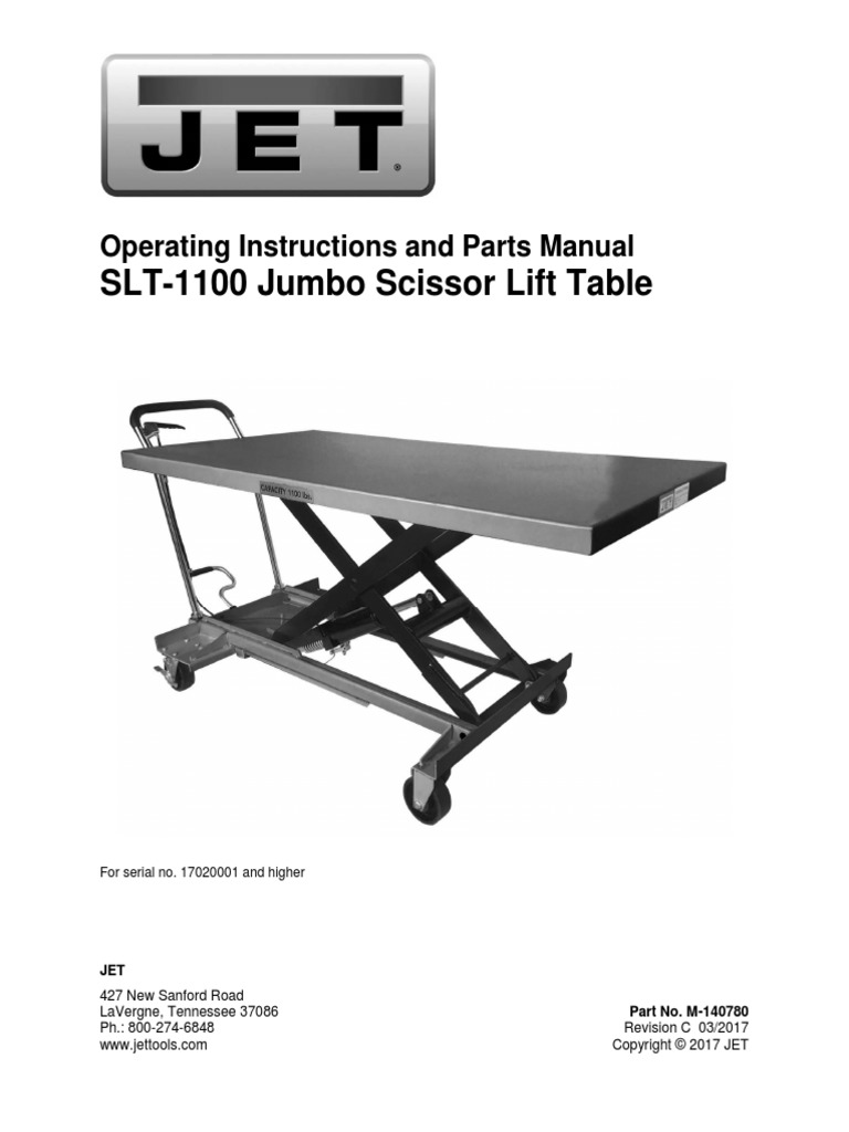 JET Scissor Lift Table — 660Lb. Capacity, Model SLT660F Northern Jet Lift Table With standard and jumbo sizes available, and capacities ranging from 330. Jet tools' mobile scissor lift tables are a convenient and reliable way to maneuver small, but heavy materials. All steel design of frame and table permit the transport of heavy materials. With standard and jumbo sizes available, capacities up to 1,650 pounds and a maximum lift height of 38. Jet Lift Table.