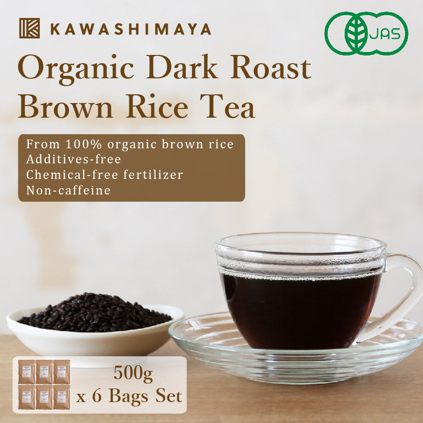 KAWASHIMAYA Organic Dark Roast Brown Rice Tea 500g x 6 Bags Set Addi