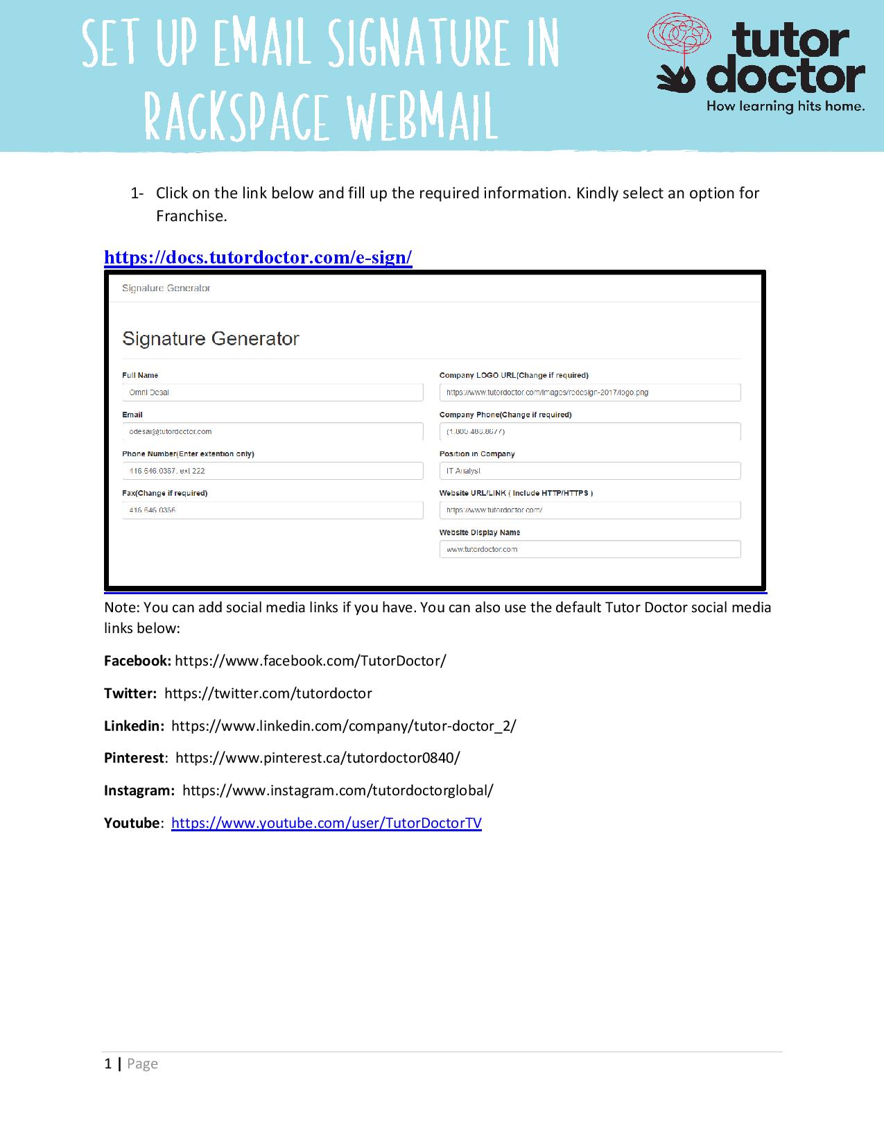 Set up email signature in Rackspace webmail