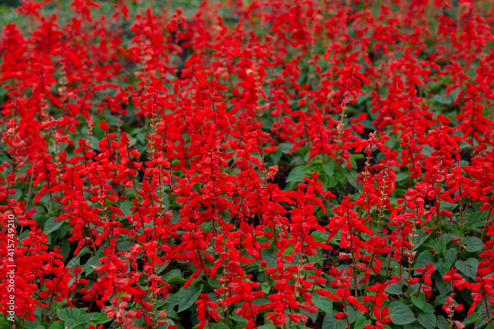 Scarlet sage (Salvia splendens) is a tender perennial that is mostly