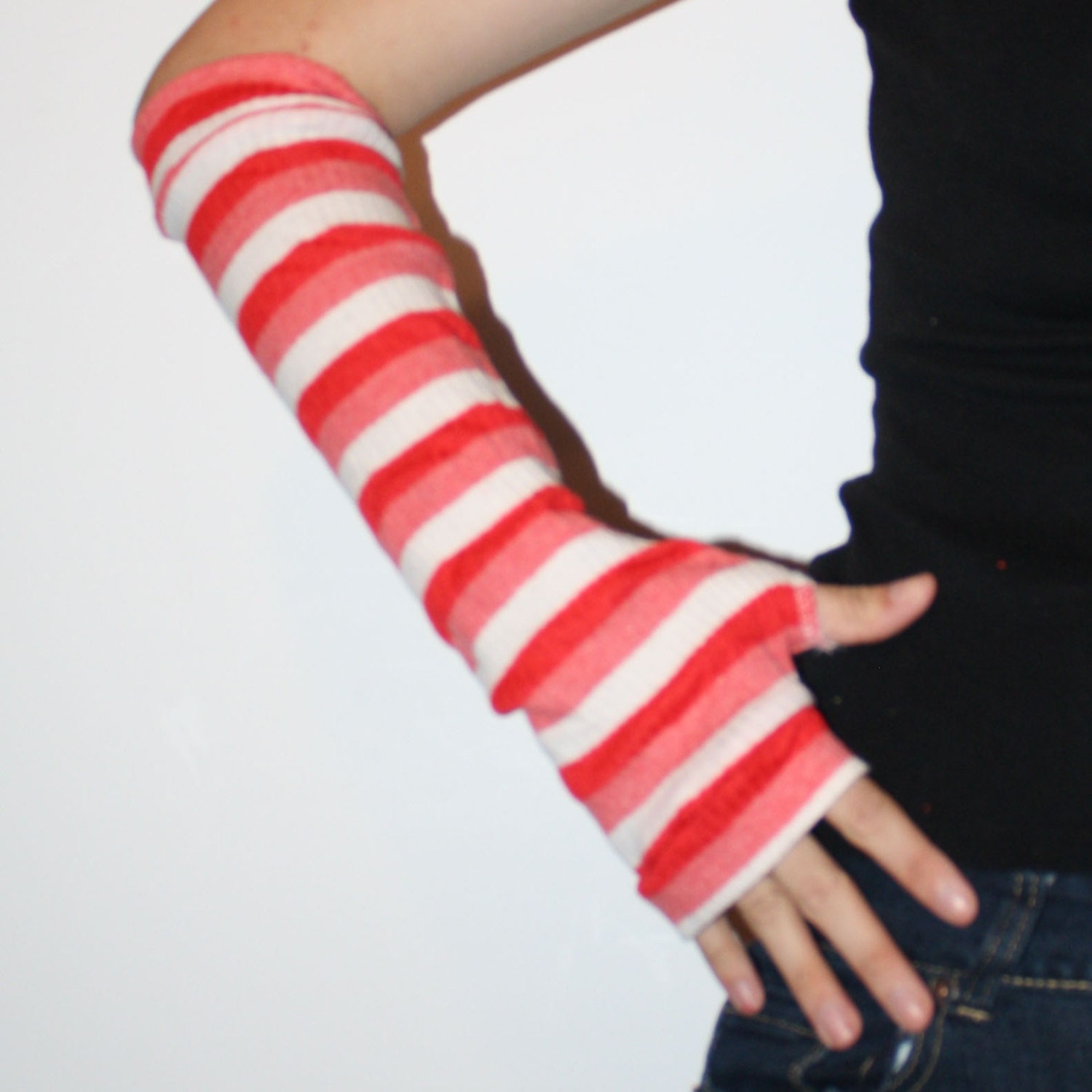 Red pink and white striped Arm Warmers by Crafterbynite on Etsy