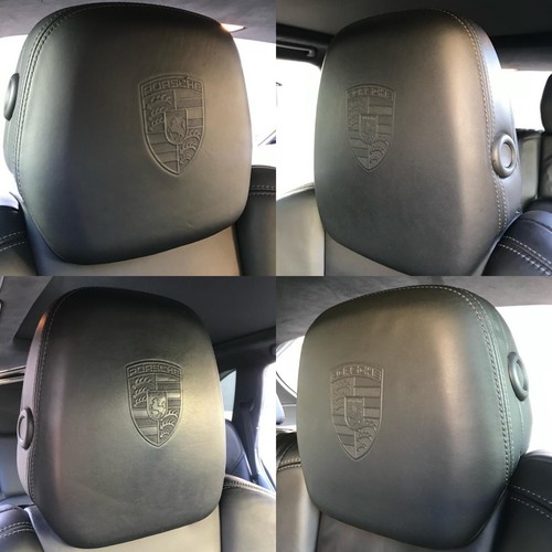Genuine Porsche Cayenne Embossed Black Leather Logo Headrests set of