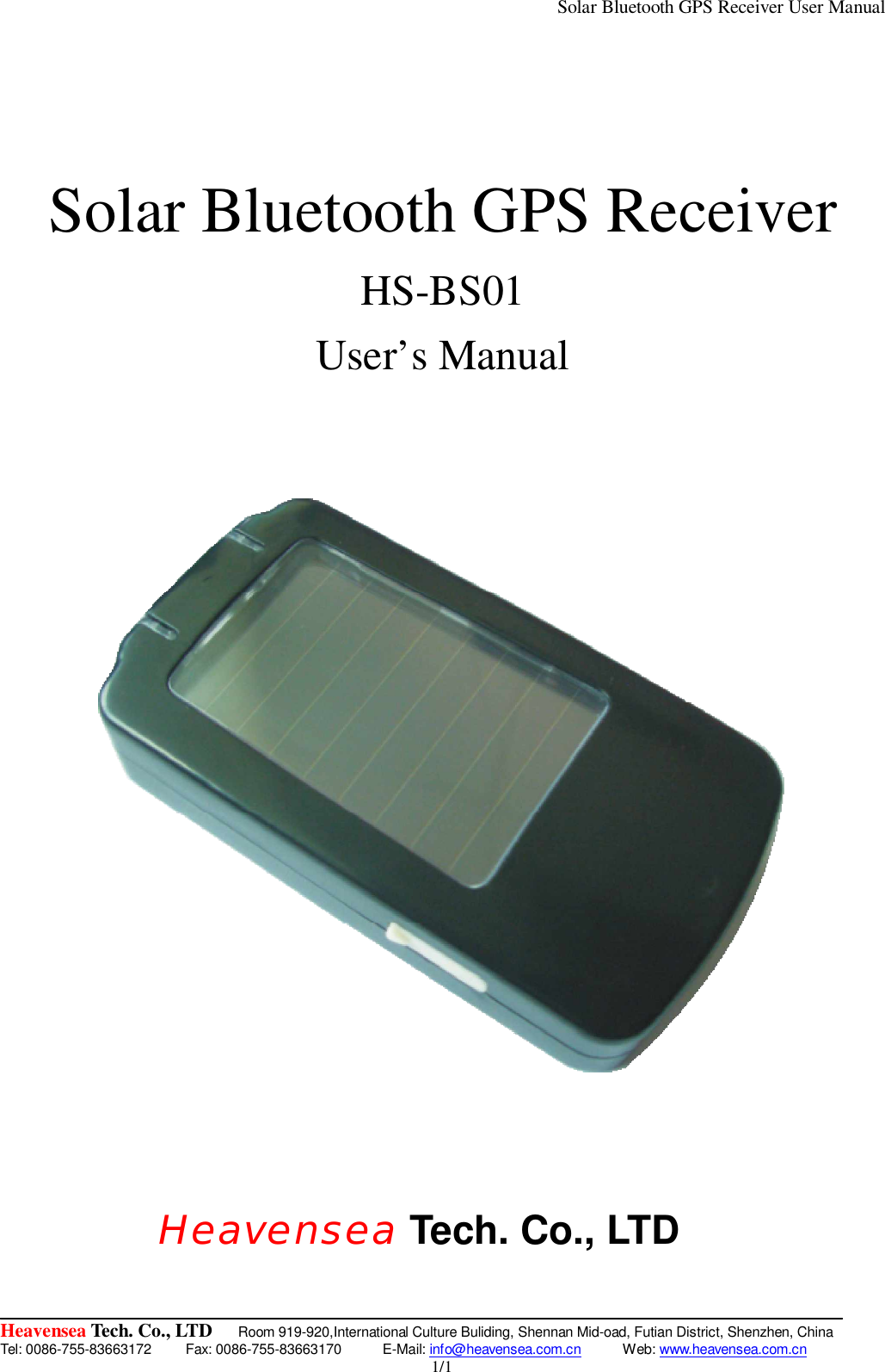 Heavensea Technology HSBS01 BLUETOOTH GPS User Manual USERS MANUAL