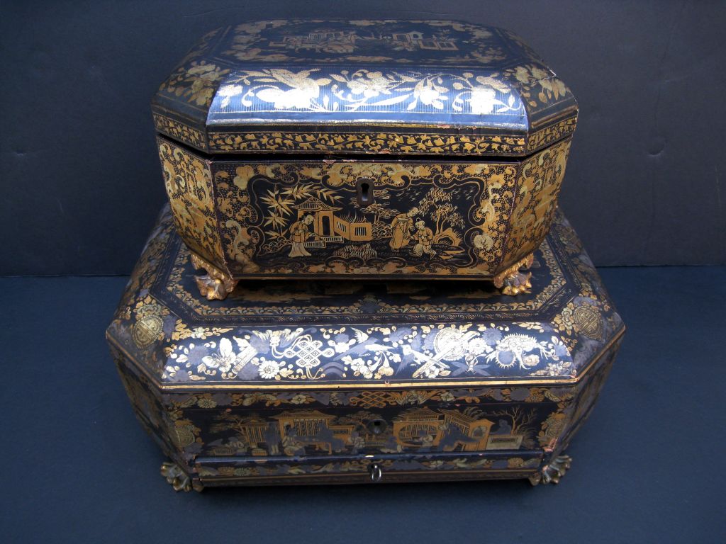 Black and Gilt Japanese Tea Box at 1stdibs