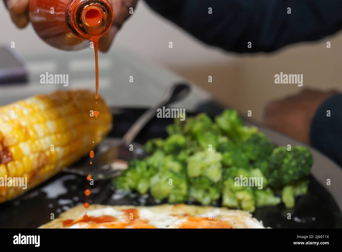 Sauce on food hires stock photography and images Alamy Pouring Hot Sauce In Eye Your first instinct may be to rub vigorously, but that can make things worse! As a result, it's fairly easy to transfer the pepper to your eyes, simply by touching or rubbing your eyes while working. Here's what you should do if you find yourself in a. Organic irritants, such as hot pepper sauce or pepper spray, are also potential. Pouring Hot Sauce In Eye.