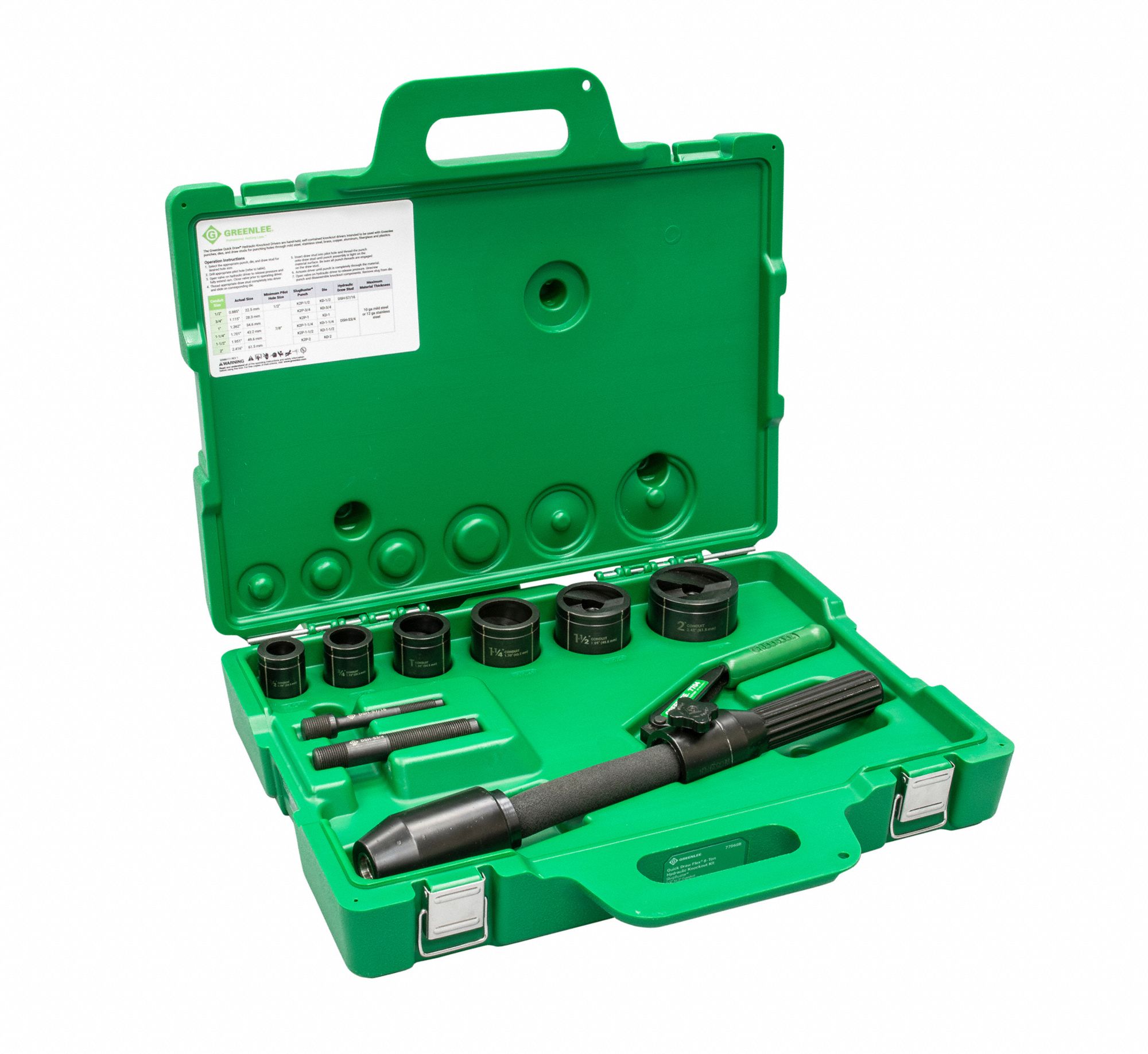 GREENLEE Hydraulic Punch Driver Set, 10 1ED777706SB Grainger Hydraulic Punch Driver Set Find a variety of hydraulic punch driver kits for electrical conduit, metal sheet, and other applications. Also available with knockout die sets metric m16. Scope of delivery {{model}} part no. A set of tools for punching holes in various materials and conduit sizes up to 4 inches. Suitable for round and rectangular punches. Set from 22.5 mm up to 61.5. Hydraulic Punch Driver Set.