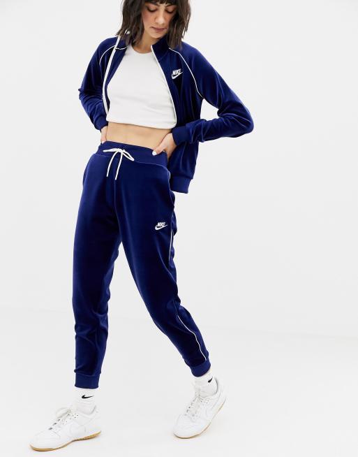 Nike Blue Velour Zip Thru Tracksuit Bottoms ASOS