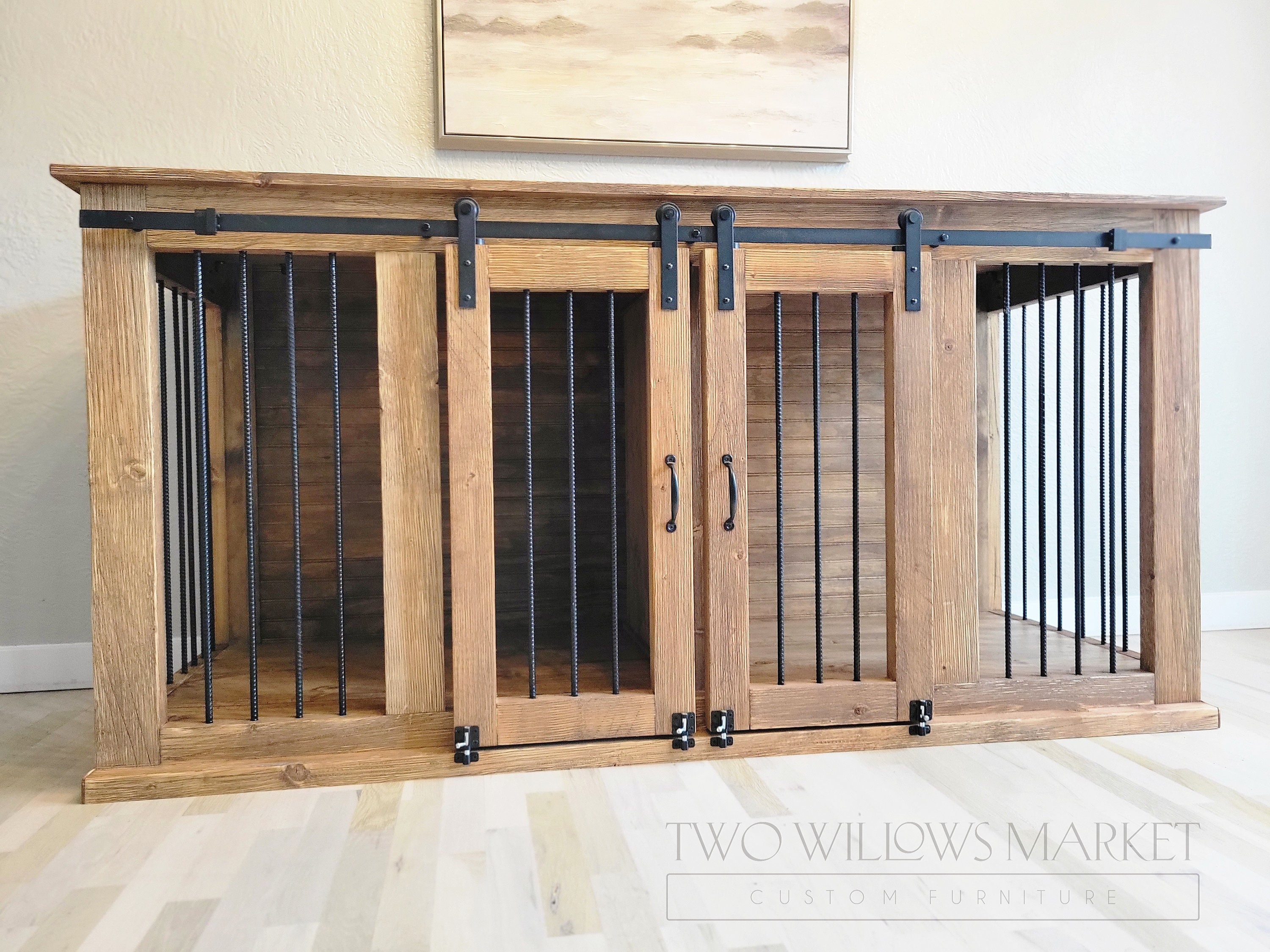 Doggie Credenza Dog Kennel Double Dog Crate Puppy Bed Pet Furniture Sliding Barn Door Etsy Credenza With Dog Kennel Shop wayfair for the best dog kennel credenza. Enjoy free shipping on most stuff, even big stuff. Check out our dog crate credenza selection for the very best in unique or custom, handmade pieces from our pet supplies shops. The dane credenza dog crate gives your precious pooch a cozy hideaway that doubles as a stylish console table. The forest. Credenza With Dog Kennel.