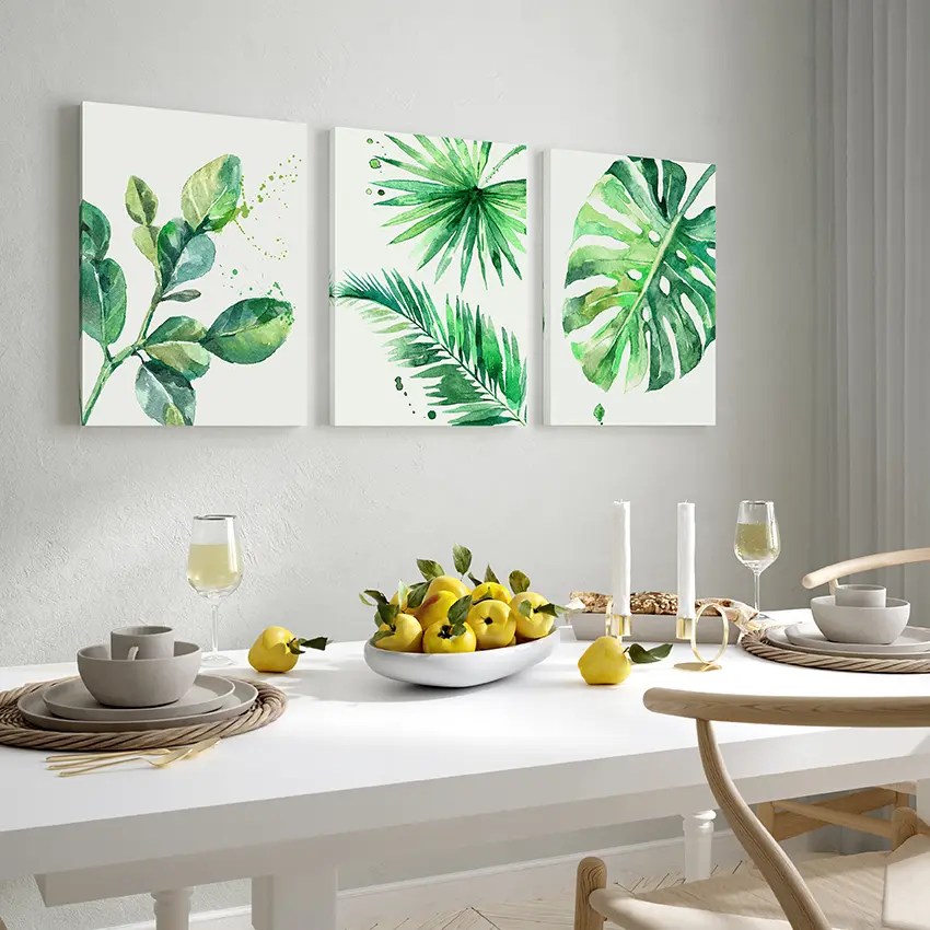 China 3 pieces of canvas wall art painting watercolor tropical green