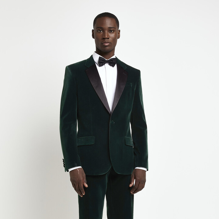 River Island Mens Dark Green Velvet Tuxedo Slim Suit Jacket ShopStyle