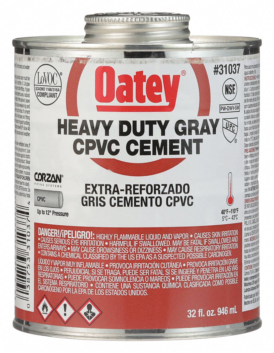 CPVC Cement,Heavy Duty,Gray,32 oz. Grainger Which Cpvc Cement To Use Apply a heavy, even coat of cement to the outside of the pipe end, and a medium coat to the inside of the fitting socket. The solvent cemented connection in thermoplastic pipe and fittings is the last vital link in a plastic pipe installation. To choose the correct solvent cement category for a particular piping system, follow the astm standard. Which Cpvc Cement To Use.
