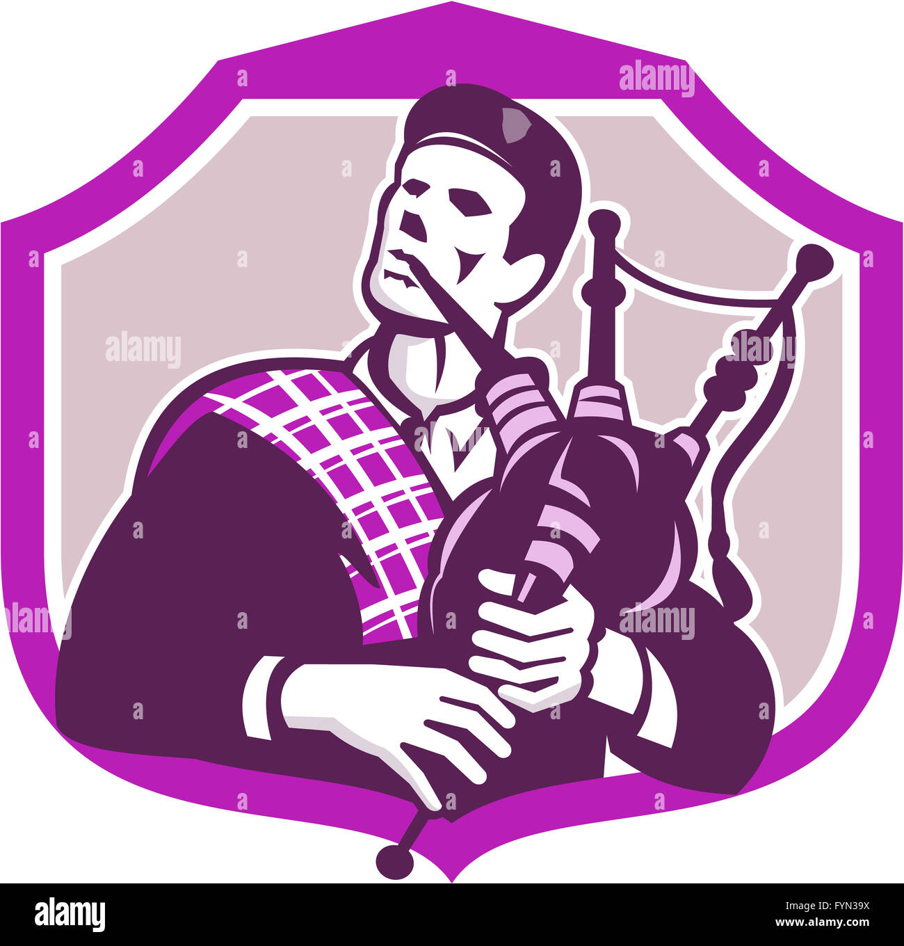 Scotsman Playing Bagpipes Shield Retro Stock Photo Alamy