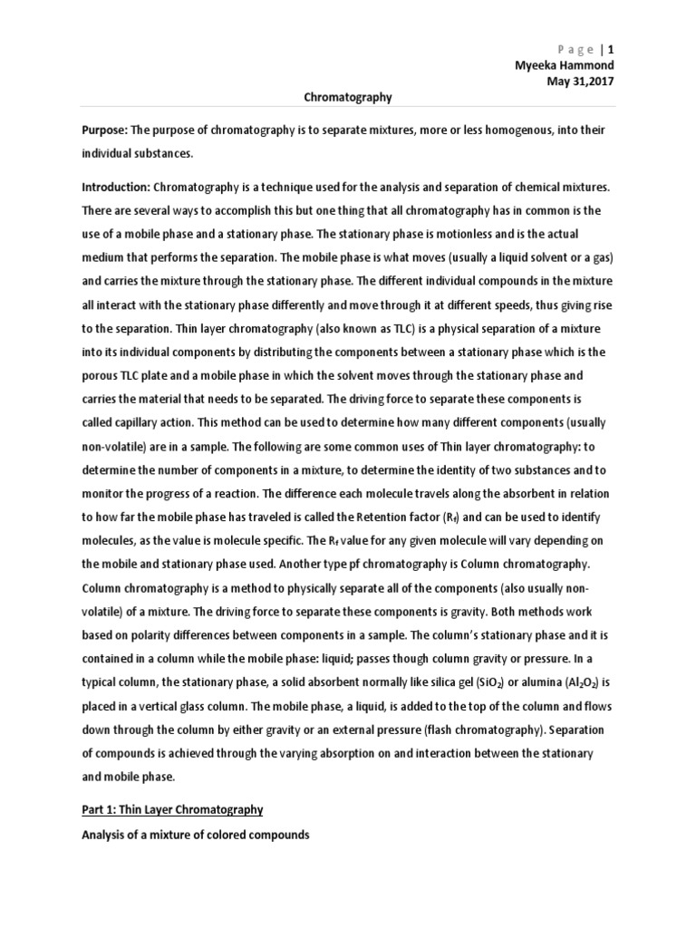 Lab Report 4 Chromatography.docx Chromatography Thin Layer