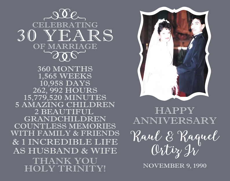 30 Year Wedding Anniversary Photo Gift Gift Idea 30th Etsy