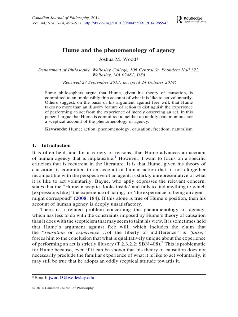 Hume and The Phenomenology of Agency PDF David Hume Experience