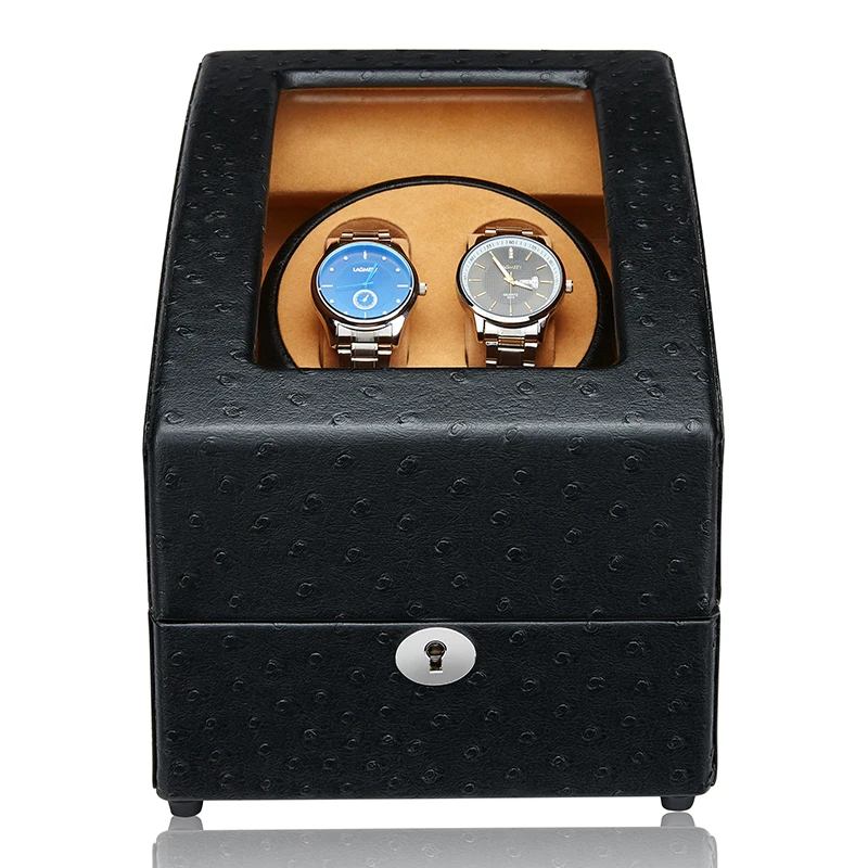 JQUEEN Automatic Double Watch Winder with 3 storages Black Ostrich