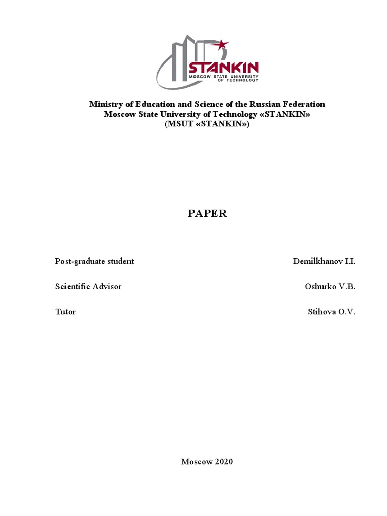 Abstract On The Topic 3D Printer Demilkhanov I.I. PDF 3 D Printing