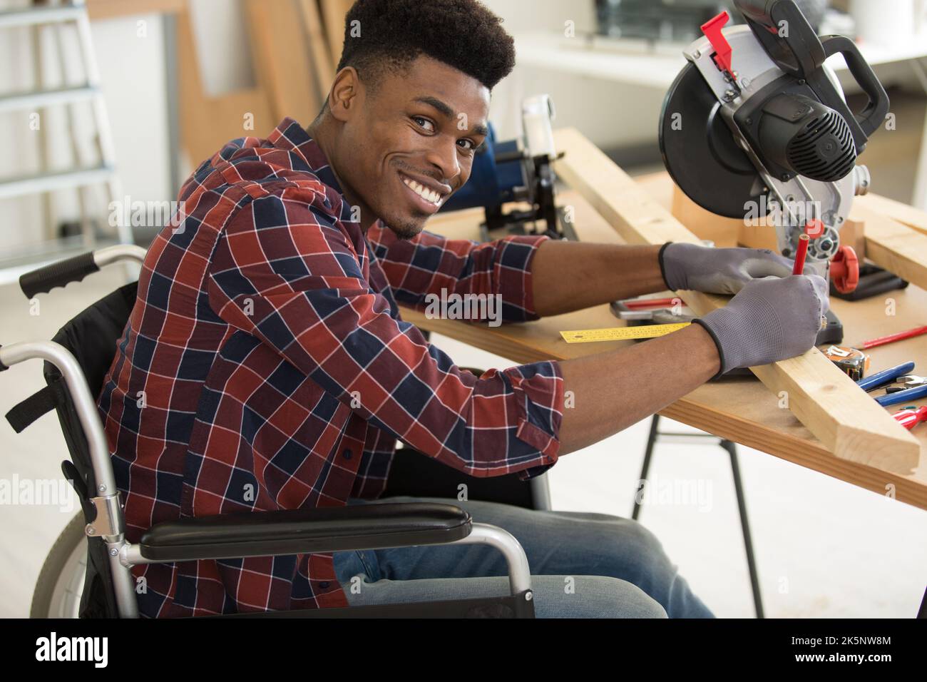 male carpenter in a wheelchair Stock Photo Alamy