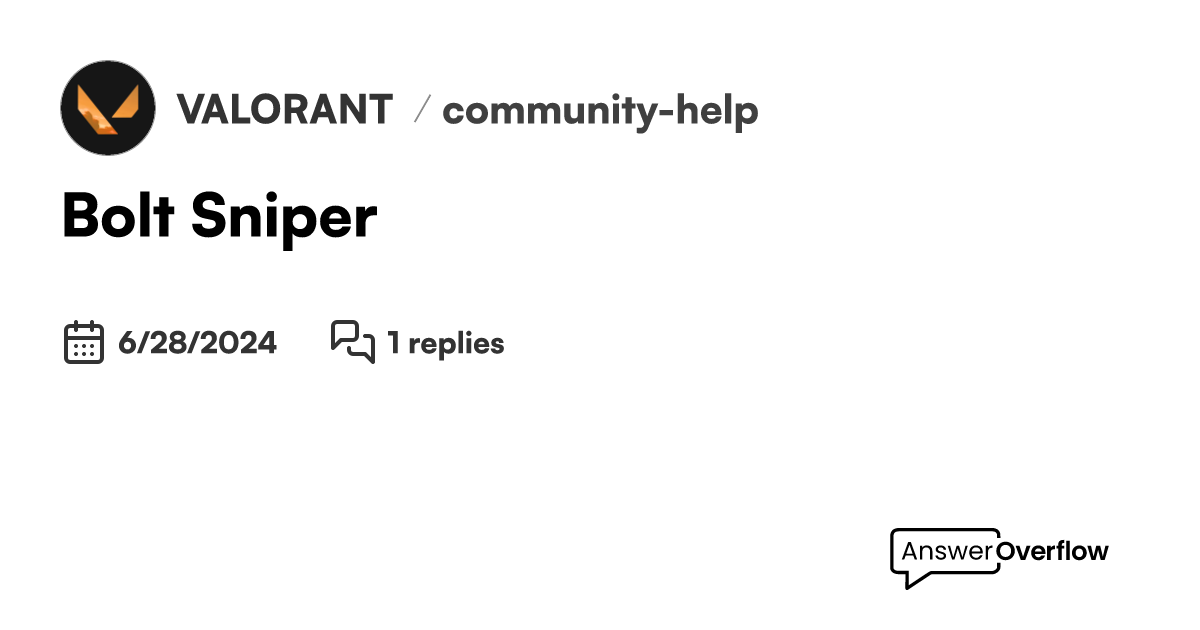 Bolt Sniper VALORANT Bolt Sniper Valorant Has anyone heard anything about the weapon the bolt sniper? It looks like you're experiencing a display bug where all weapon categories are showing as bolt sniper. this can happen due to a glitch within the client. Sometimes when i start all the weapons in the collection tab say the same. Not sure what's causing the bug though. Operator ·. Bolt Sniper Valorant.