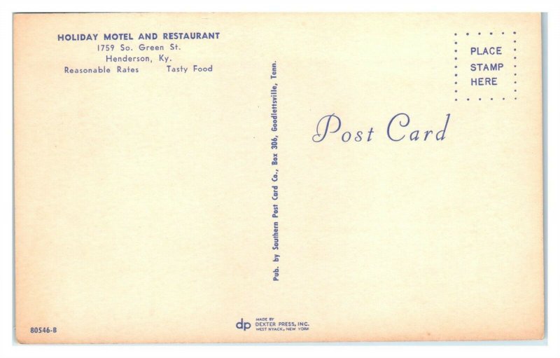 1950s/60s Holiday Motel and Restaurant, Henderson, KY Postcard *6T4