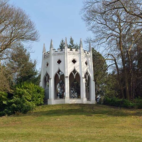 The Gothic Temple at Painshill landscape garden in Cobham, Surrey