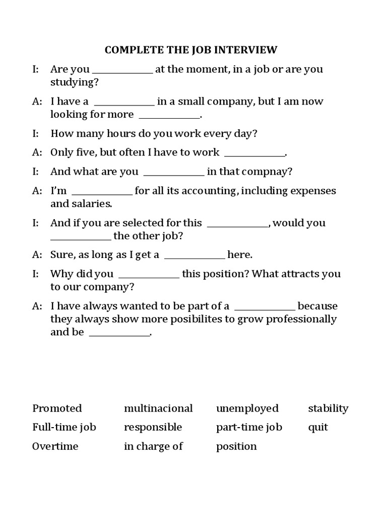 Complete The Job Interview PDF Labor Economies