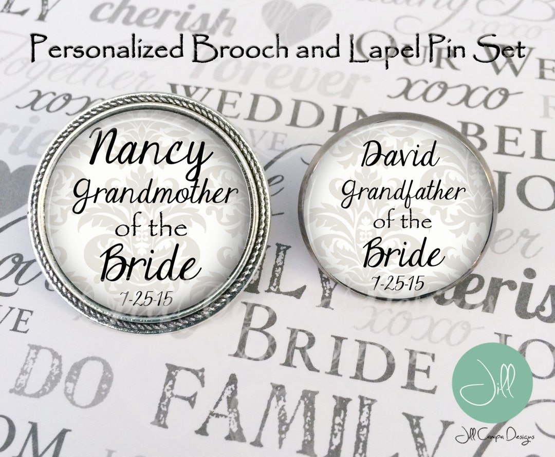 Personalized Brooch and Lapel Pin Set Grandmother and Grandfather of