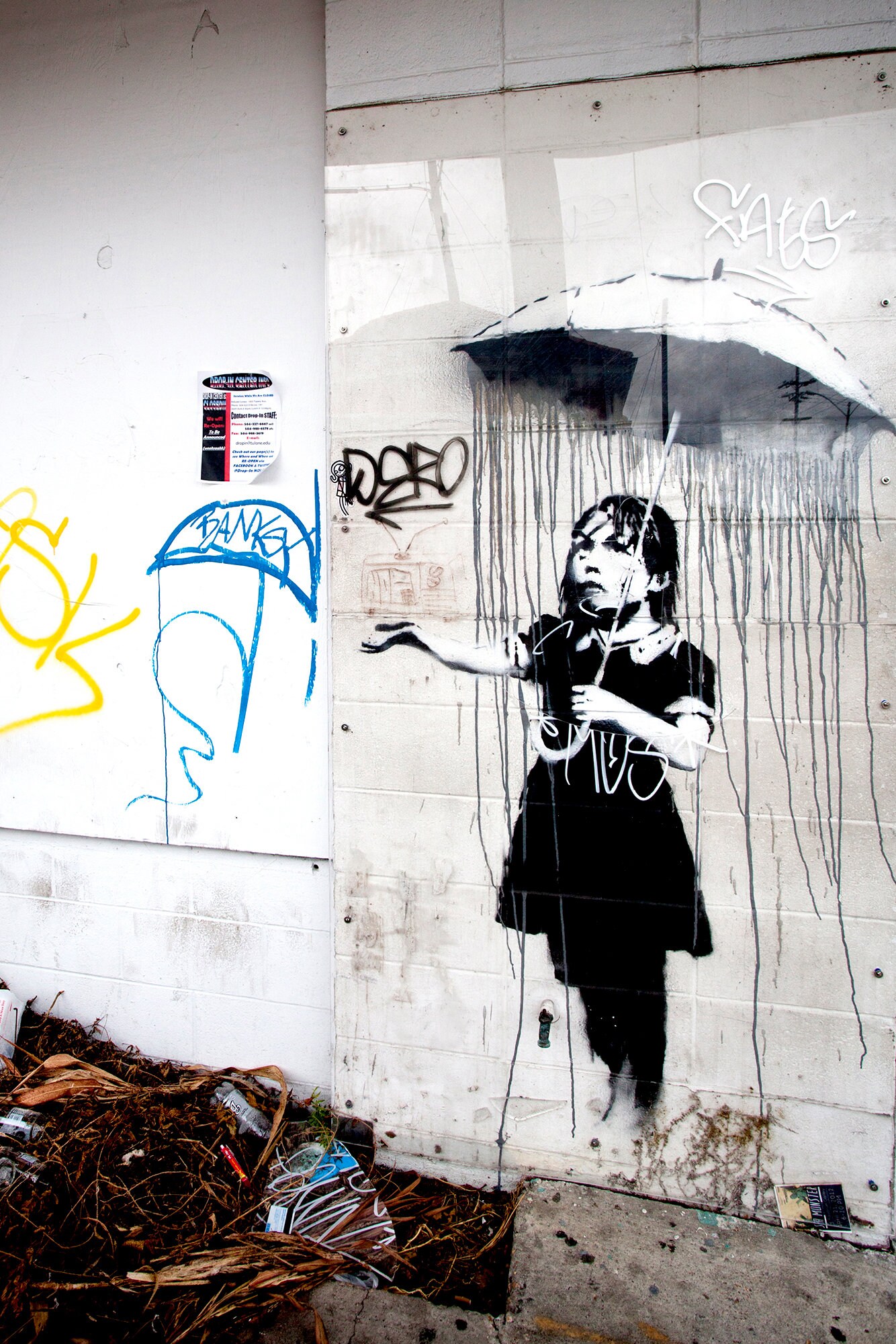 Banksy New Orleans editorial image. Image of banksy 171508065 Umbrella Girl Meaning Banksy Nola is a stencil graffiti by banksy that depicts a girl in a raincoat and an umbrella, but the rain is coming from the umbrella itself. It is one of the few banksys that survives. The artwork is a critique of the government's negligence after. Nola is banksy’s comment on the government’s actions: Nola, or umbrella girl, is a famous. Umbrella Girl Meaning Banksy.
