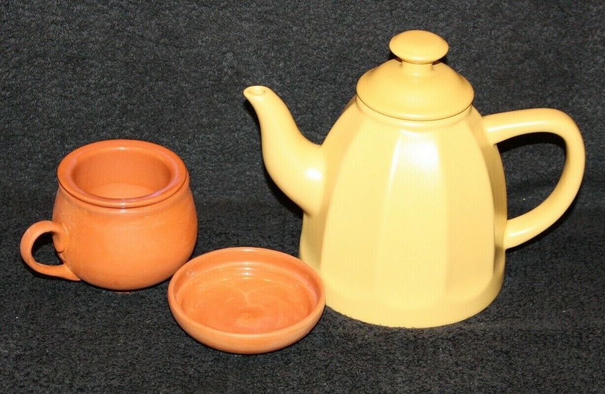 Chantal Ceramic Teapot Yellow with Clay Cup & infuser Lid .75 Qt 2003