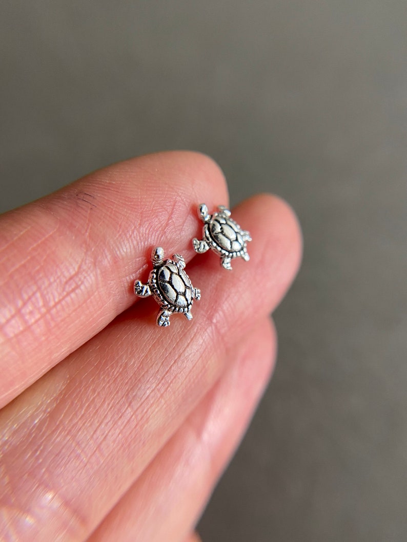 Handmade silver turtle stud earrings, sea turtle earrings, minimalist cute animal studs, small sterling silver turtle earrings, gift for her Check out our 14k turtle earrings stud selection for the very best in unique or custom, handmade pieces from our stud earrings shops. Choose a 14k gold turtle necklace made with colorful gemstone inlay, a pair of sterling silver turtle earrings, or rings adorned with sparkly diamonds for sea turtle jewelry that is. These adorable turtle stud earrings are perfect for both children and adults.