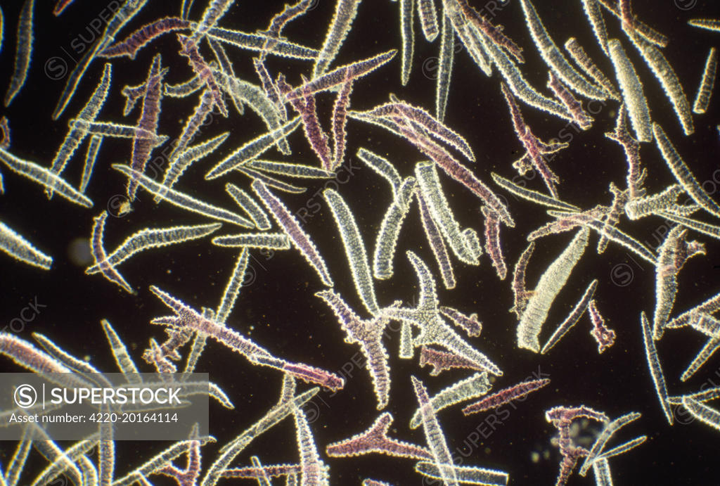 Sponge spicules Black and White Stock Photos & Images Alamy Sponges Spicules Sponges, regardless of the class to which they belong (i.e., calcarea bowerbank, demospongiae sollas, or hexactinellida schmidt),. The mineral skeleton is formed for the most part by units called spicules, either scattered throughout the sponge or united to form fibres;. Spongin is a modified type of collagen protein, and forms the fibers or mortar. Molecular clocks indicate sponge classes diverged. Sponges Spicules.