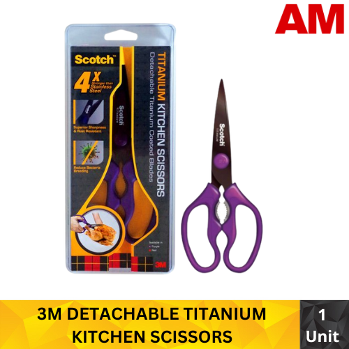3M Scotch Titanium Kitchen Scissors Detachable (Purple) NTUC FairPrice Scotch Titanium Kitchen Scissors Ideal for cutting fabrics, photos and other materials where control matters most. Scotch™ precision ultra edge scissors are ideal for fabric, crafts and photos. Check each product page for other buying options. Scotch Titanium Kitchen Scissors.
