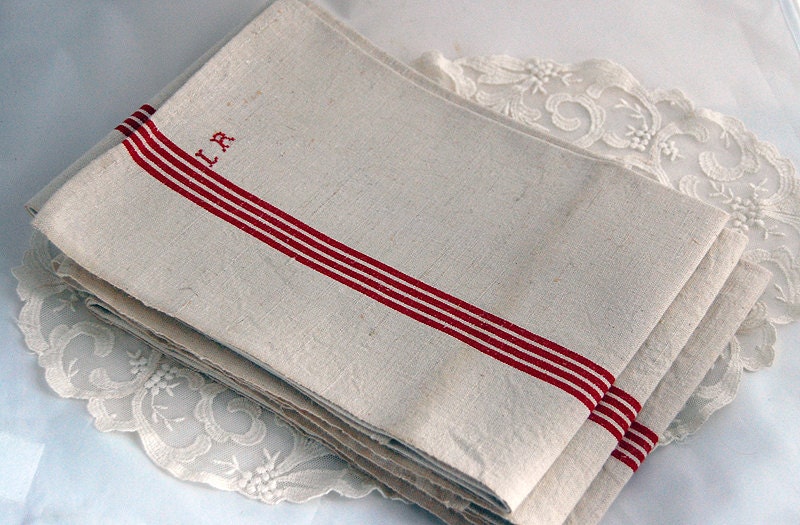 Antique French linen tea towel kitchen towel by LaCroixRosion