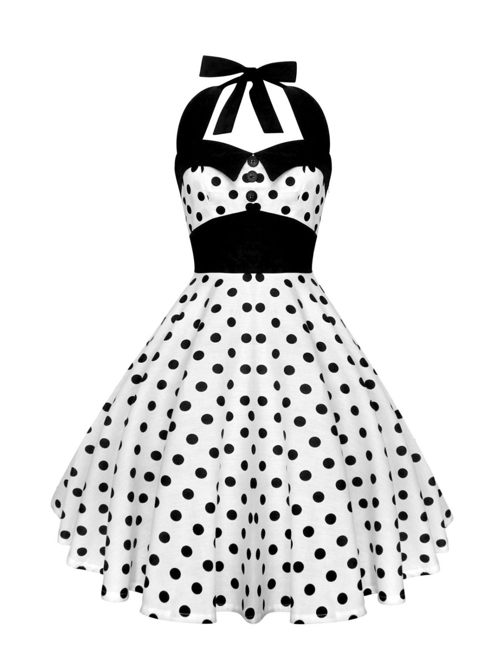 Women's vintage polka dot halter dress 1950s floral spring retro rockabilly cocktail swing tea dresses $646 ($3.12/square meter) free delivery sat, sept 7. 300+ bought in past month. Black and white polka dot dress. Black polka dots on white scalloped rolled border trim.