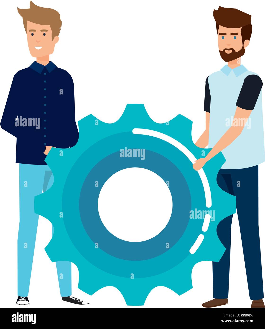 young businessmen lifting gear vector illustration design Stock Vector
