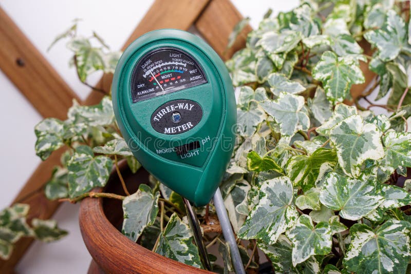 A House Plant with a Light, Moisture and PH Meter Stock Photo Image