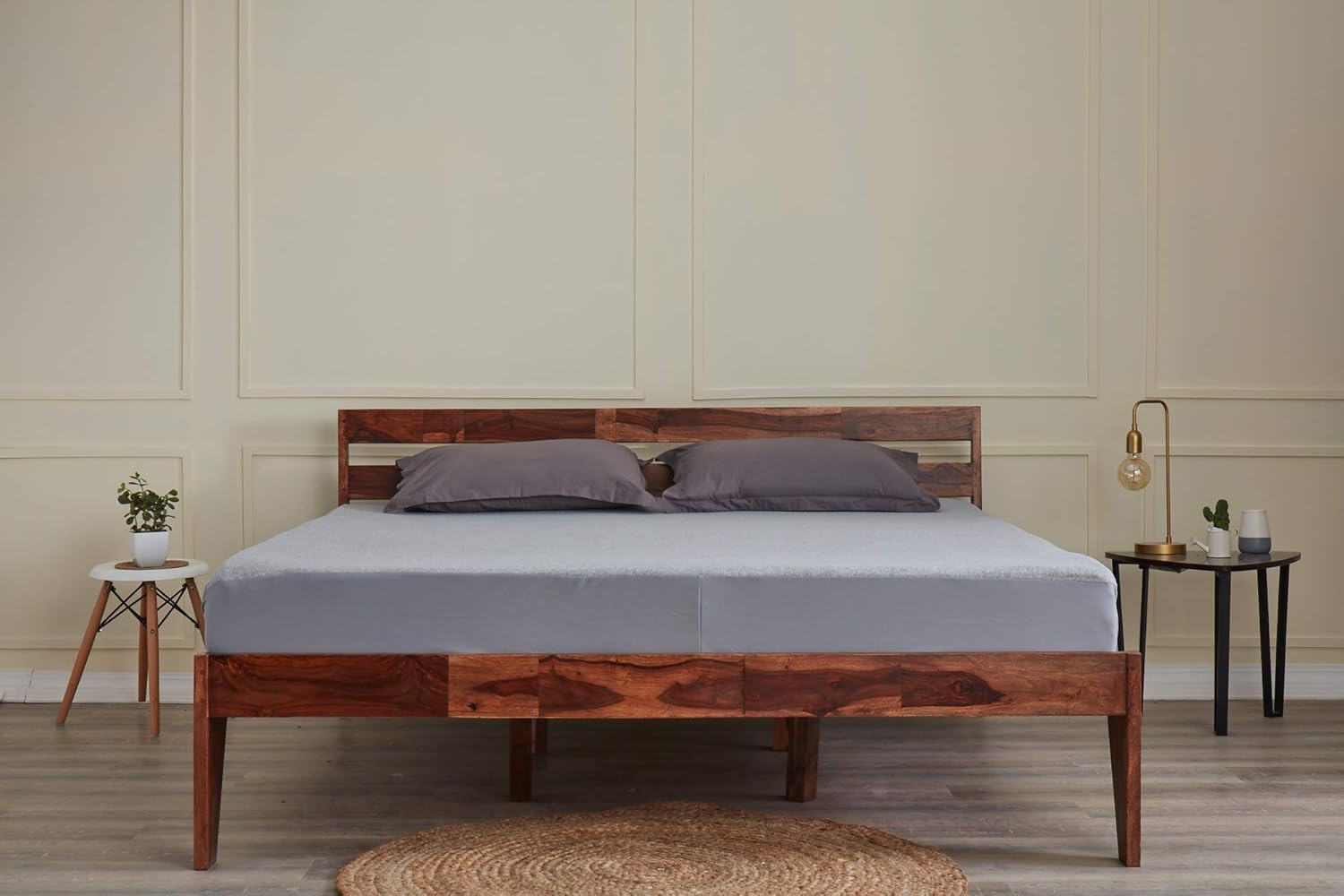 Wakefit Queen Size Bed & Mattress Combo Sheesham Wood Bed