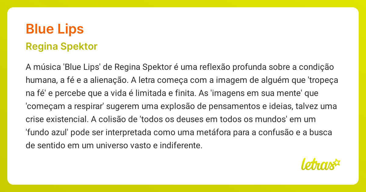 Significado da música BLUE LIPS (Regina Spektor) LETRAS.MUS.BR