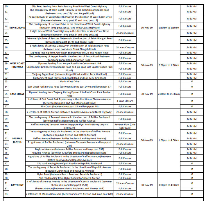 Standard Chartered Singapore Marathon Road Closure