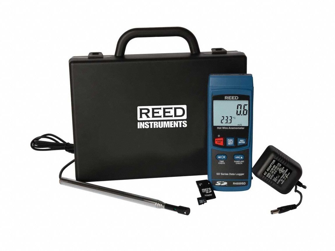 REED HOT WIRE THERMOANEMOMETER KIT W/TRIPOD Air Velocity Meters and Hot Wire Anemometer Grainger Hot wire air velocity meters, sometimes called thermal anemometers, measure the speed of air passing over their sensing elements by. Find your reed instruments anemometer, hot wire, 40 to 4921 v fpm, lcd display, up to 99 auto reads, builtin contact. Hot wire air velocity meters, sometimes called thermal anemometers, measure the speed of air passing over their sensing elements. Hot Wire Anemometer Grainger.