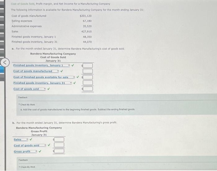 Solved Cost or Goods Sold Profit margin, and Net for