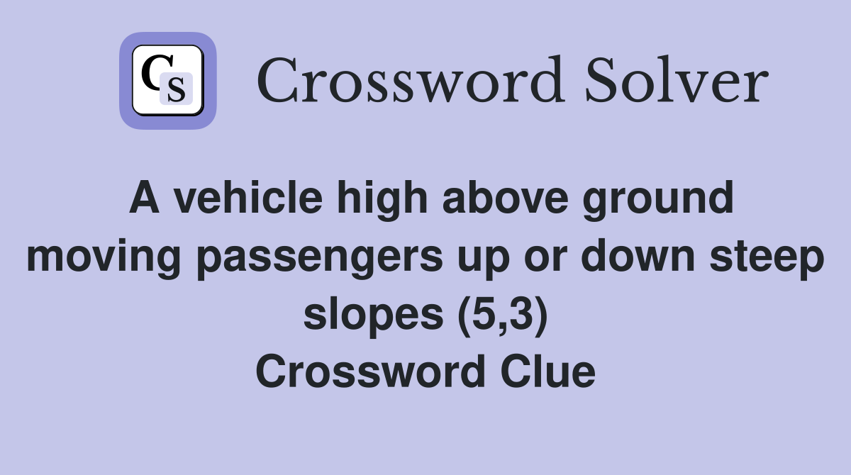 A vehicle high above ground moving passengers up or down steep slopes Passenger Vehicle Crossword Clue We will try to find the right answer to this particular. We have found 40 possible. The crossword solver found 30 answers to passenger vehicle (3), 3 letters crossword clue. The crossword solver found 30 answers to passenger vessels (7), 7 letters crossword clue. Today's crossword puzzle clue is a quick one: Solve crossword clues online for free. Passenger vessels. Passenger Vehicle Crossword Clue.
