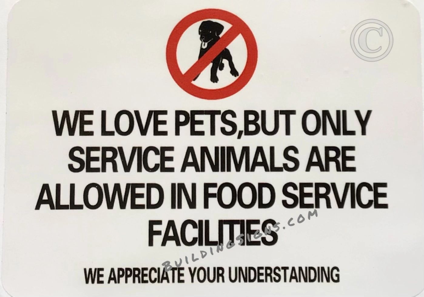 SERVICE ANIMALS ONLY NO PETS IN FOOD SERVING FACILITIES SIGN HPD