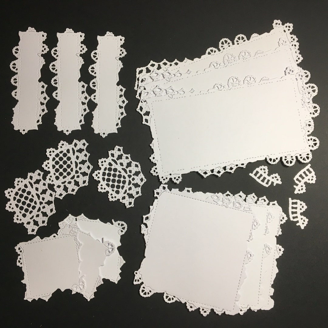 Beautiful Lace Die Cut Card Toppers Variety Pack. 5 Designs Etsy What Is Die Cut Lace Die cutting is using a machine that applies pressure to cut out delicate shapes from paper, card fabric and other materials. You can repeatedly create the same shape with the same dimensions, without using scissors, stencils, or a In crafting, die cutting refers to a process in which you use a machine to create a cut out of shapes. Corinne. What Is Die Cut Lace.