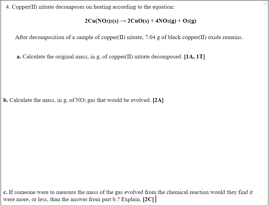 Solved 4. Copper(II) nitrate on heating according
