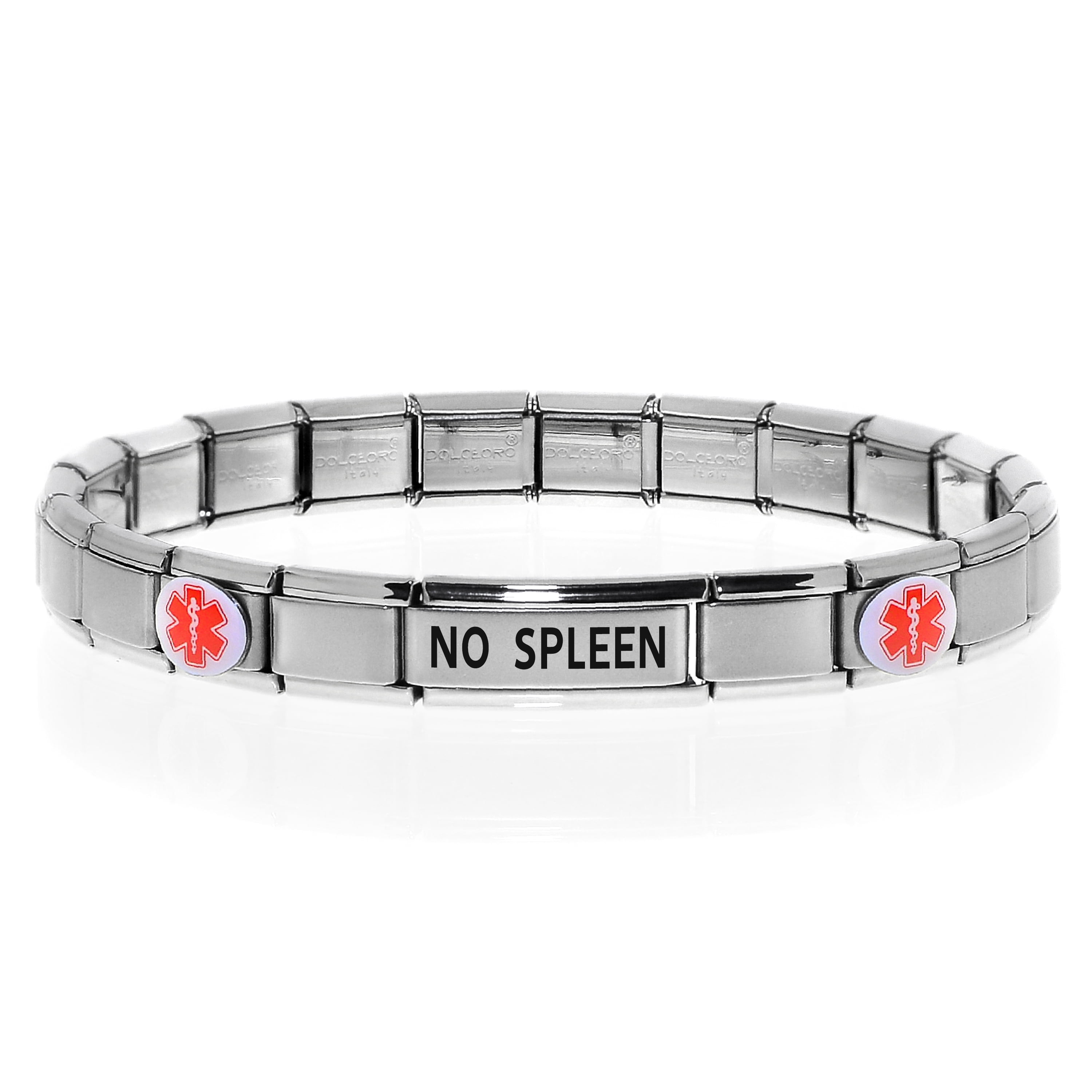 NO SPLEEN Medical Alert ID Bracelet, Modular Charm Style 18 Std. Link