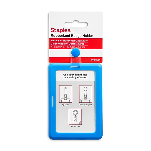 Staples Clip On ID Badge Holder, 4" x 2.87", Rubber, Blue (51918) Staples