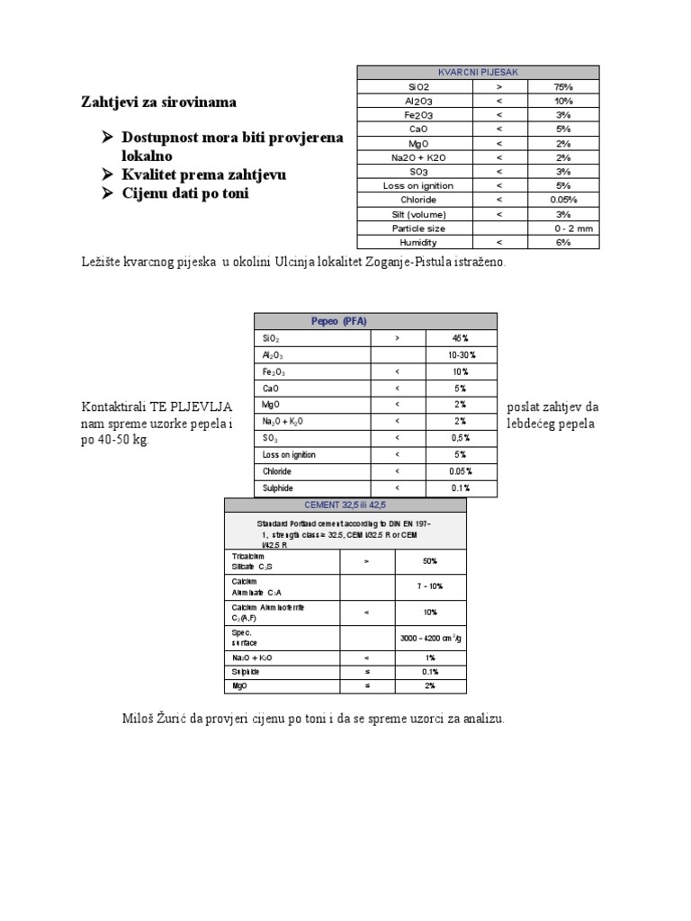 Potrebne Sirovine I Sastav PDF