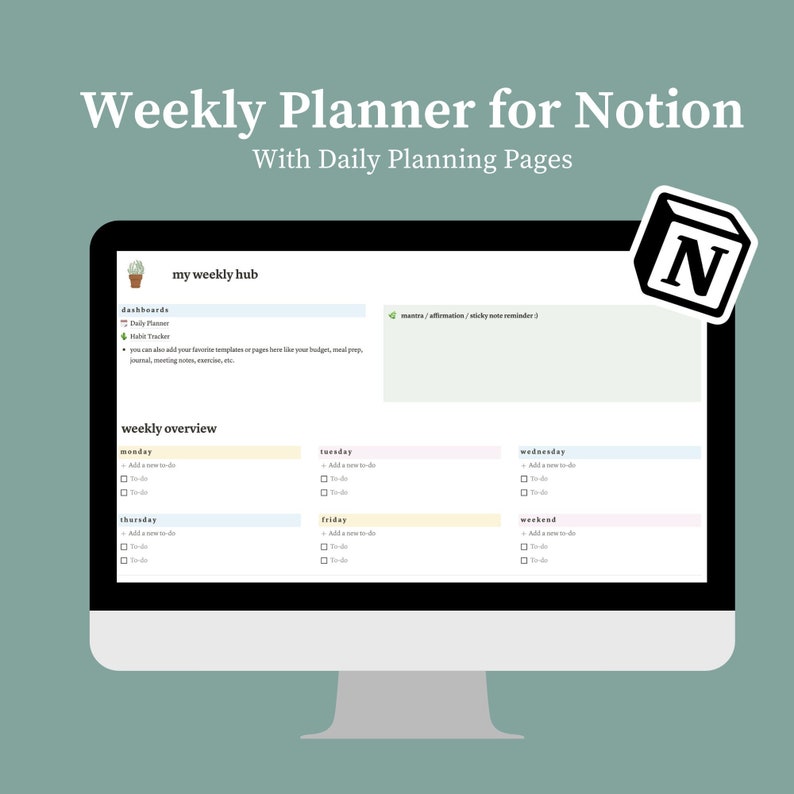 Weekly & Daily Planner Notion Template Aesthetic ADHD Etsy